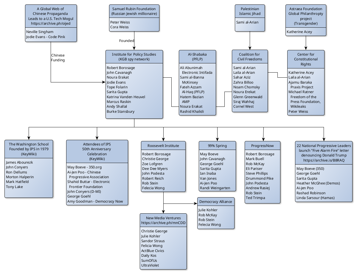 "@Lance_Edelman @C_3C_3 They are all clustered around the old Russian KGB network Feds refuse to touch them because they won elections "legitimately" by getting tons of foreign funding and having British intel ban their opponents from the internet. Also most feds support them. https://www.discoverthenetworks.org/organizations/institute-for-policy-studies-ips/ https://www.discoverthenetworks.org/organizations/institute-for-policy-studies-ips/"